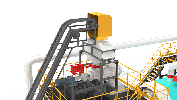 全連續煉油設備由反應釜、驅動系統、取樣器、螺旋除渣器、汽包系統、靜電除塵器、水冷出渣機、油氣冷凝系統、水冷炭黑儲存罐、螺旋進料機、稱重機、料倉等幾部分組成
